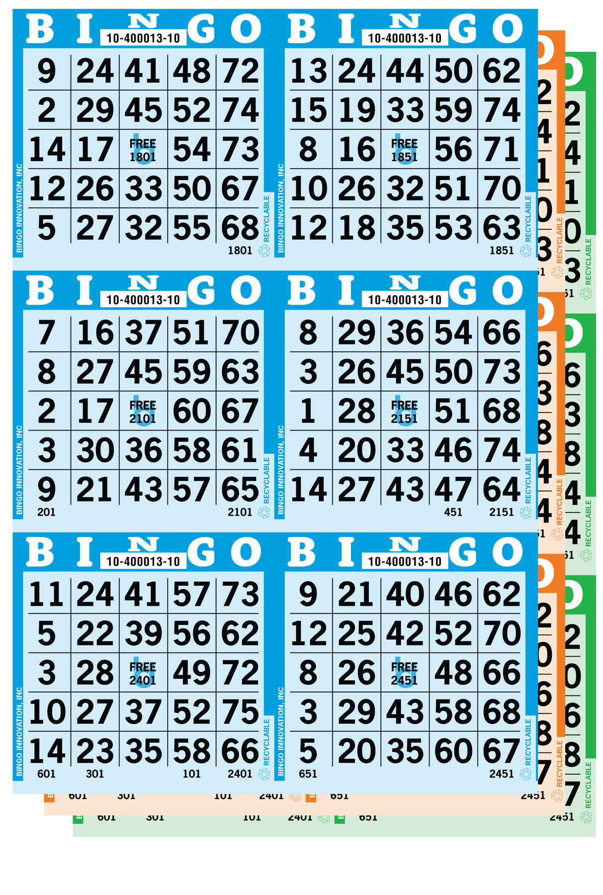 Elevate your bingo game with our premium Tinted collated books! Available in multiple configurations - 3on (3000 books), 6on (1500 books). Each book features a consistent Tinted color rotation for easy game management. Perfect for bingo halls, fundraisers, and community events. Best for Early Bird and special games.