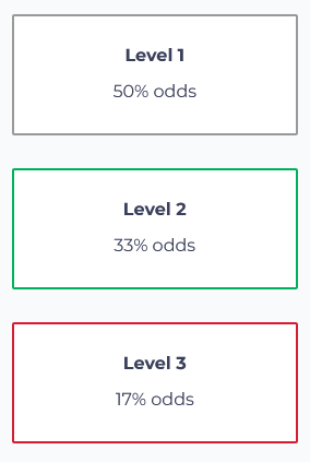 Spectrum's predetermined odds remain constant with any pure horizontal cut, so desired average payouts can be determined quickly. For example, players may play to win $100 on Level 1 (50% odds), $200 on Level 2 (33% odds), and $1,000 on Level 3 (17% odds). Players get a chance to win a top prize of $1,000, yet your average payout is only $283 per game. That's less than the average payout of a competitive program offering $300 per game.