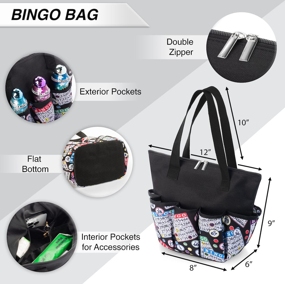 • 13 Storage Compartments for Accessories: Stay organized with 10 outer pockets for bingo daubers, dabbers & markers, plus 3 inside compartments for bingo cards, pull tab holders & personal essentials like keys or phone.